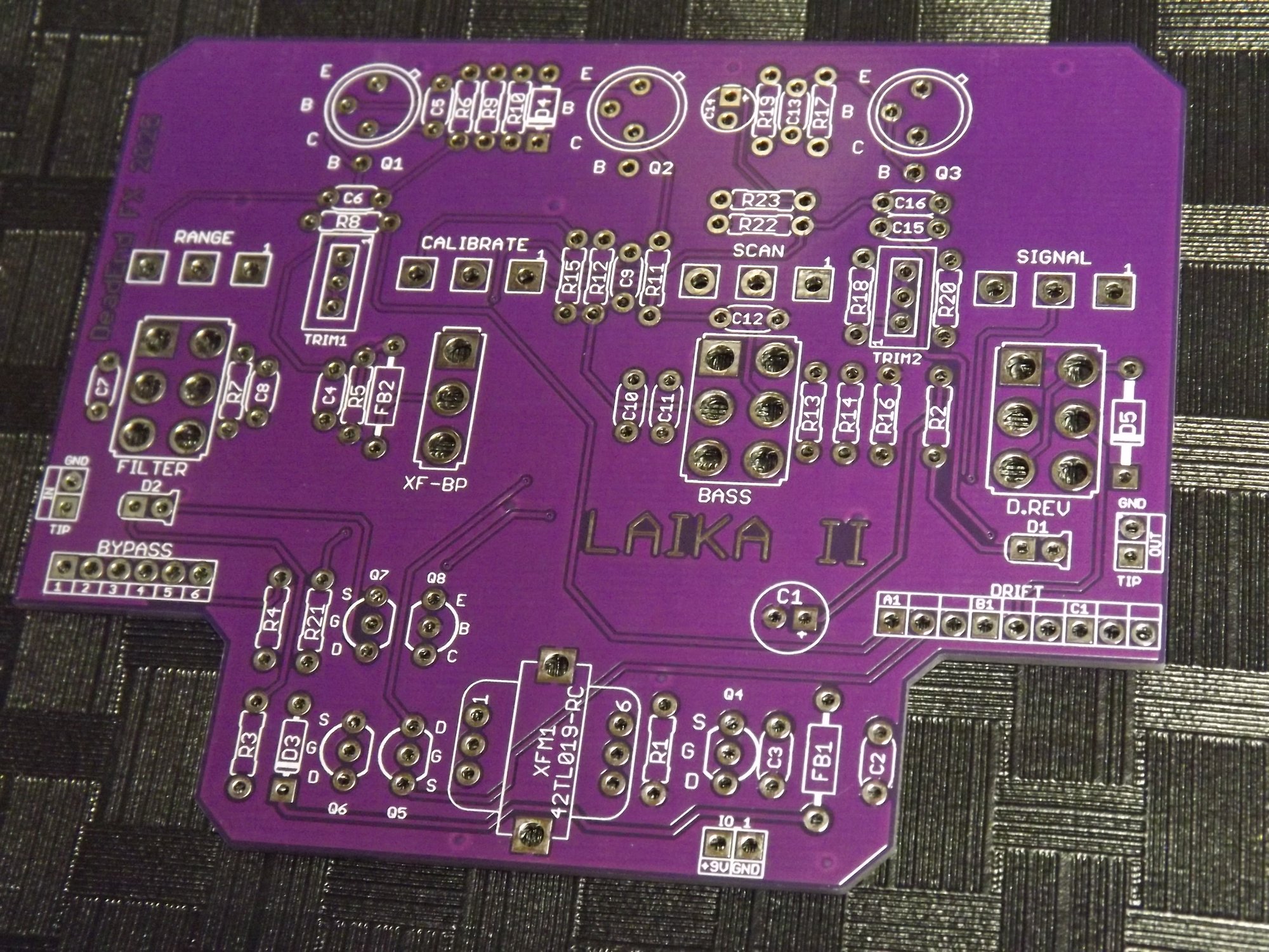 Clone board of the Spaceman Effects Sputnik IIb. This is the latest version of the now famous Sputnik line of fuzz boxes that were produced by Spaceman. The circuit has been tweaked to add additional tonal variations, as well as allowing for the input transformer to be switched out, if so desired.